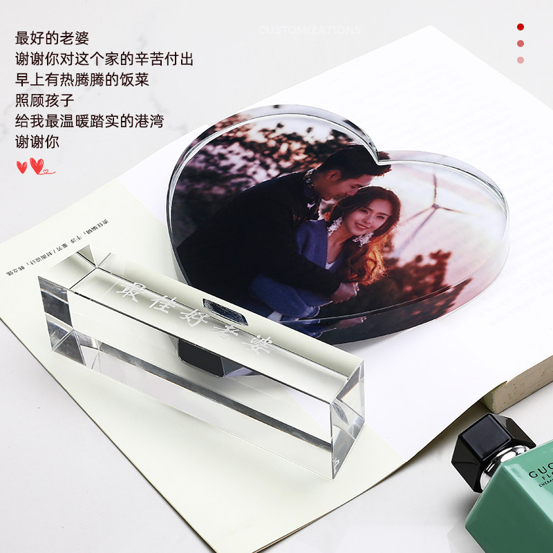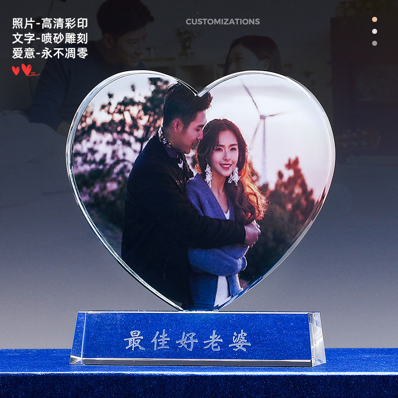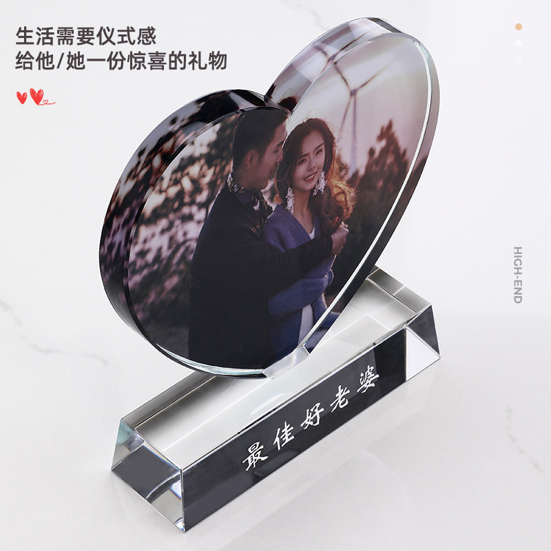 Love crystal color printing trophy Qixi Festival gift for male and female friends custom Valentine's Day gift wedding souvenir