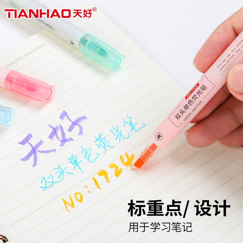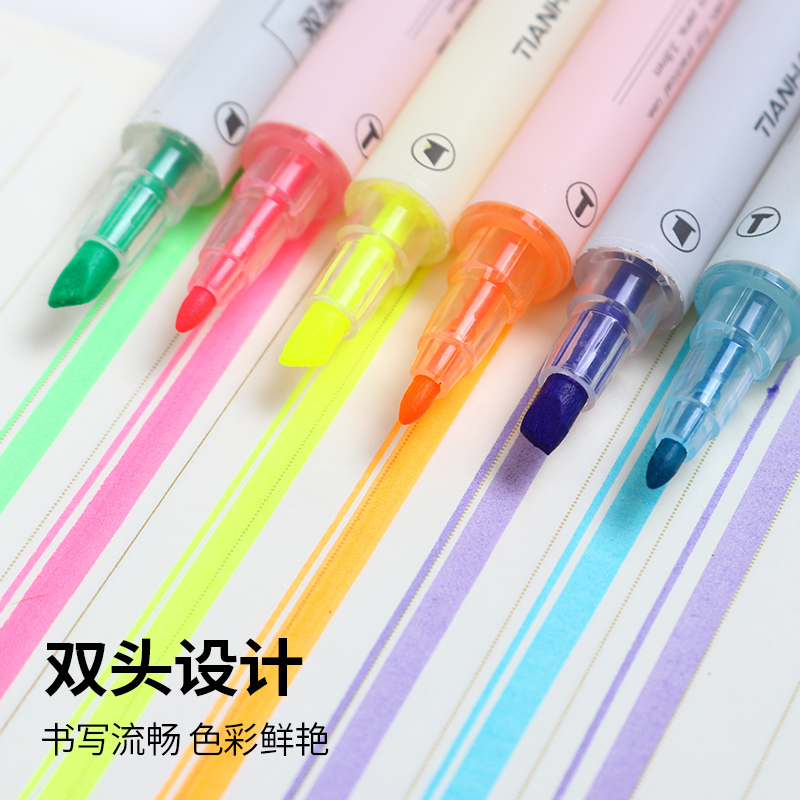 6 6-color double-headed monochrome highlighter marker marker pen color thick and thin key endorsement for record pen