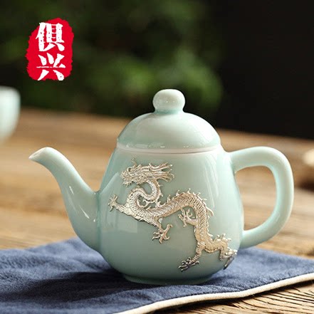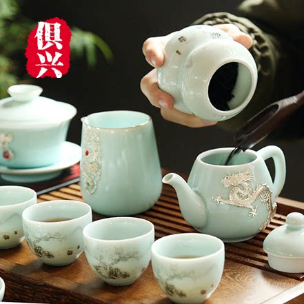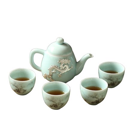 High-end fine inlaid silver green porcelain suit portable one pot four cups home office tea tea ceramic tea set courtesy kit