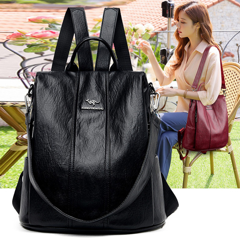 Kangaroo Double Shoulder Bag Woman Genuine Leather 2021 New Theft Protection Bag Travel Big Capacity Mom Soft Leather Cow Leather