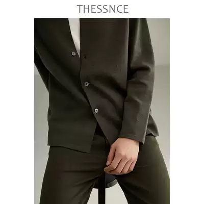 THESSNCE heavy texture precision spinning warm waxy cotton wool casual suit knitted cardigan men Spring Autumn