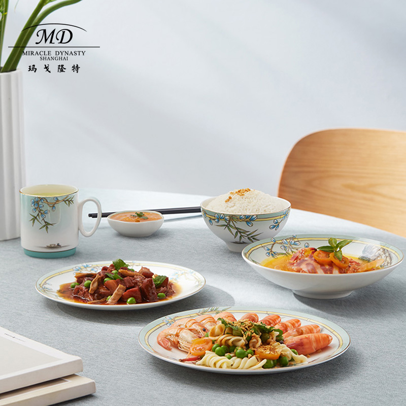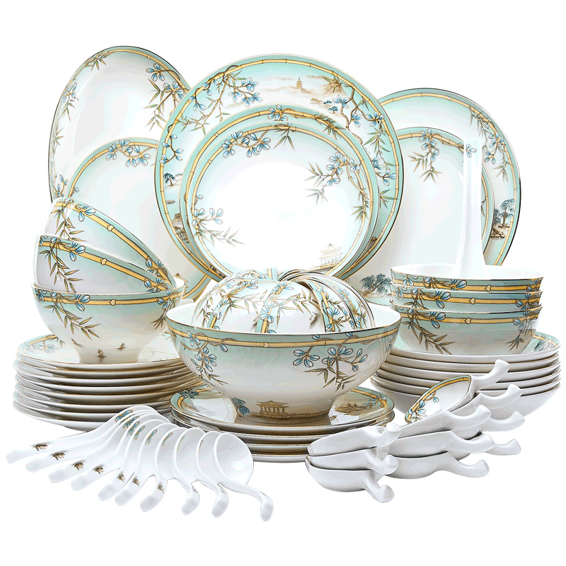 Margolonte Bone Porcelain Tableware Suit West Lake Feast For Home 10 People Chinese Style Light Lavish Bowls Dish Spoon Gift Box