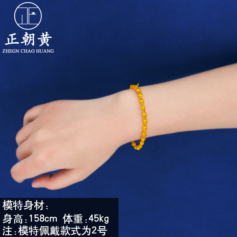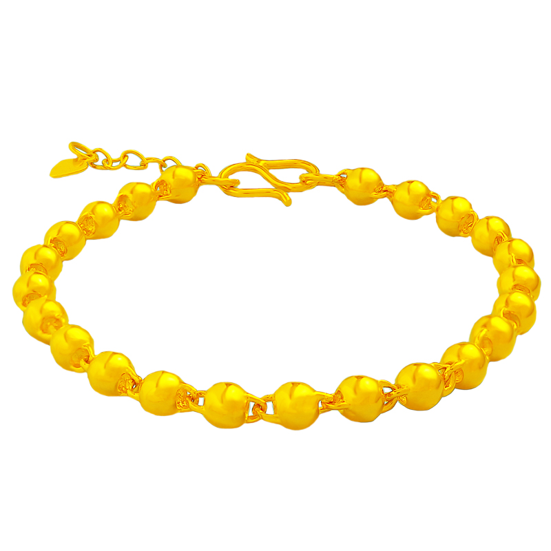 Plated sand gold round pearl lady hand alchemy glossy Buddha beads simple luxurious pure gold color chain for a long time without fading gift jewellery