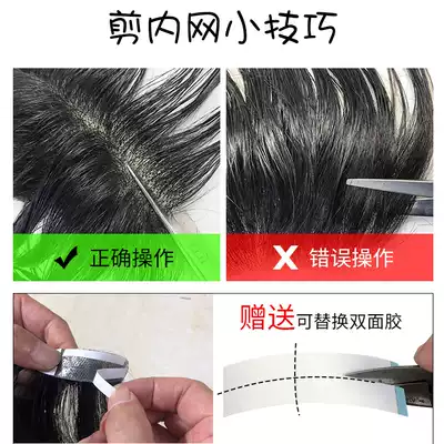 Men's hairline wig invisible unscathed forehead bald M-shaped cover high forehead real hair silk reissue block