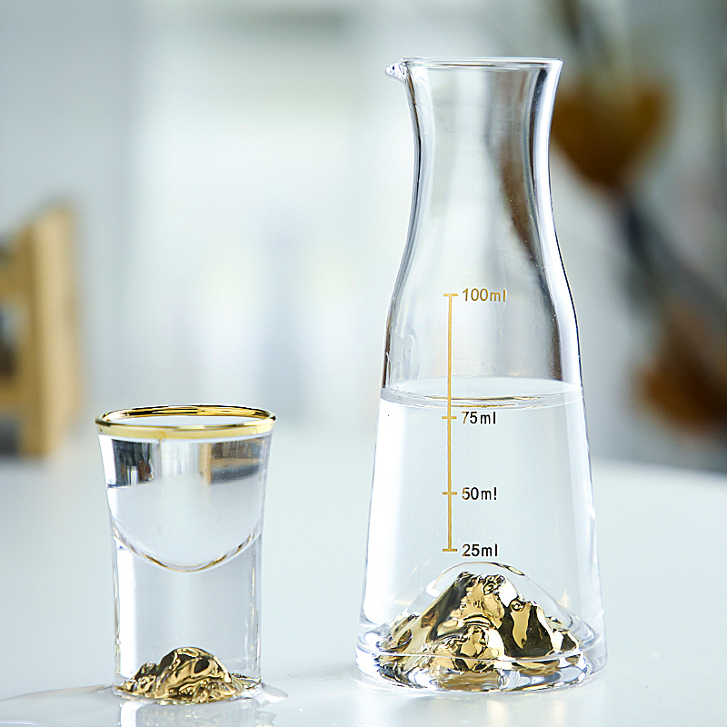 Light luxury Jinshan base liquor glass set crystal glass wine dispenser small male cup with gold rim bullet cup set