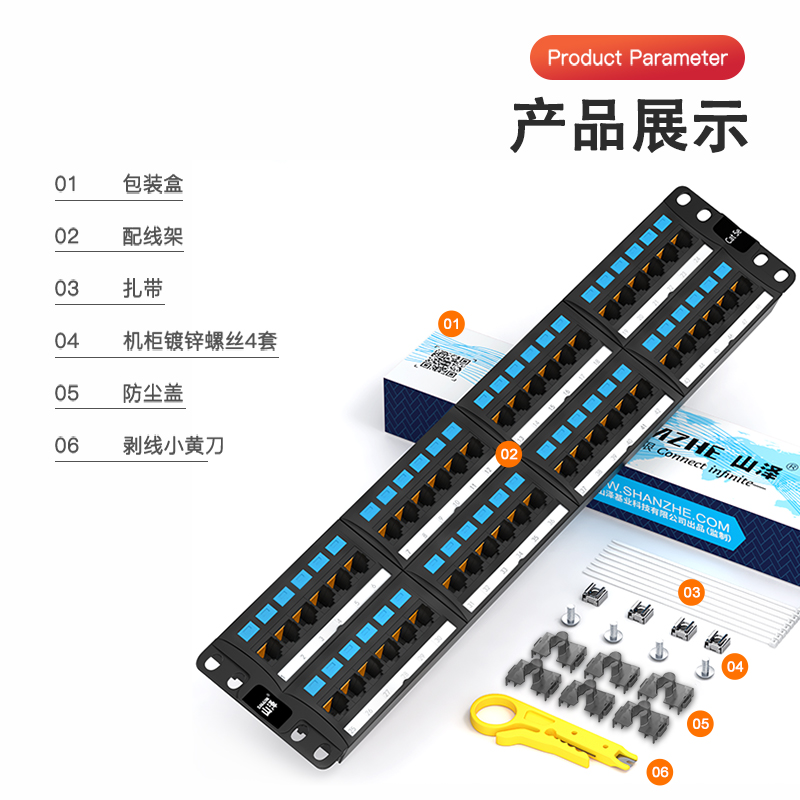 Shanze BL6-48 six types of wiring frame 48-port gigabit network engineering gold-plated rack-mounted cabinet network wiring frame