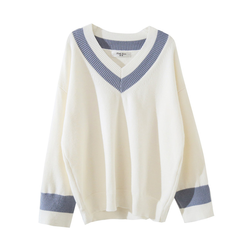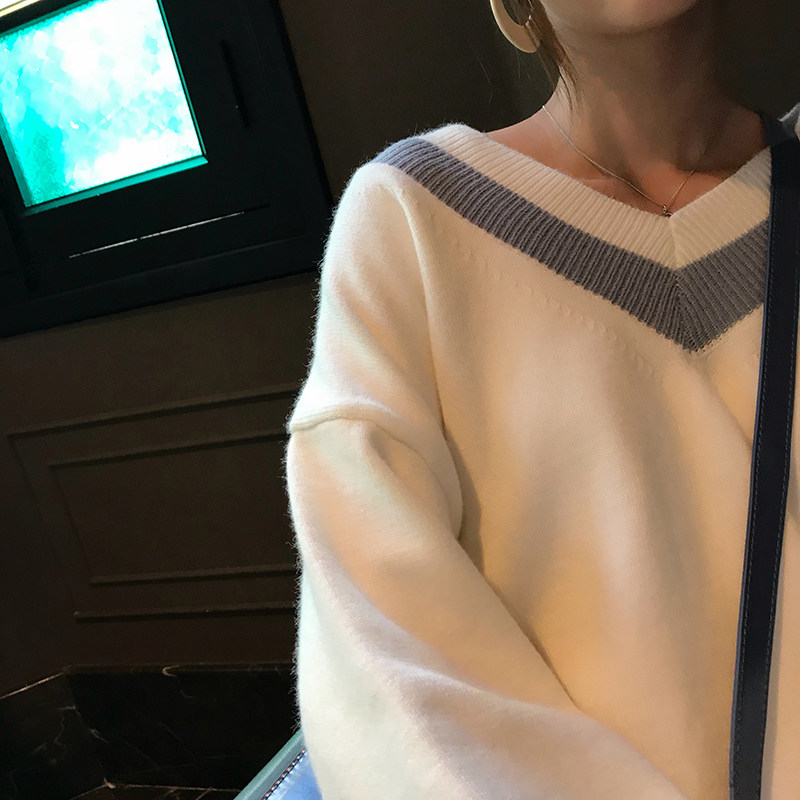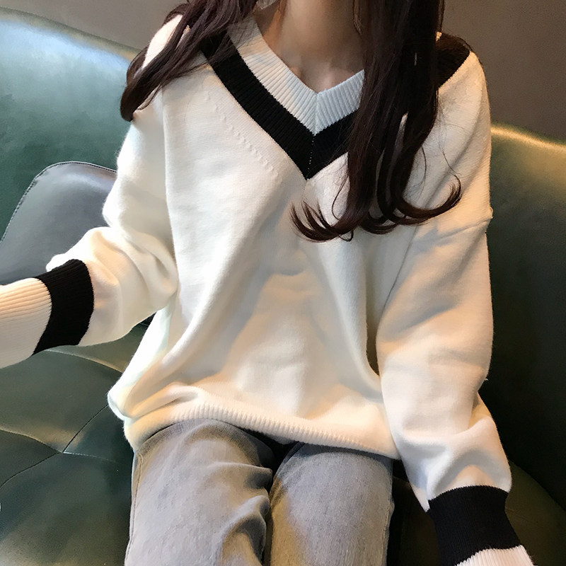 Sweater women's V collar outside wearing 2021 Fall new loose display slim white blouses jacket head slapped bottom needle weaselloo