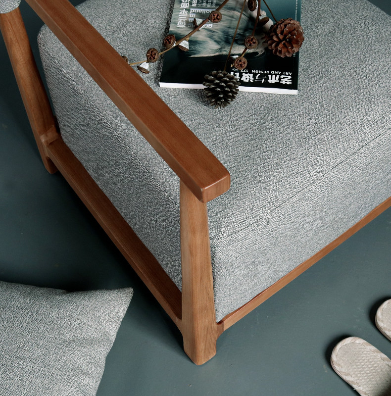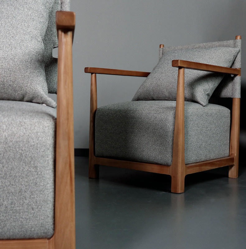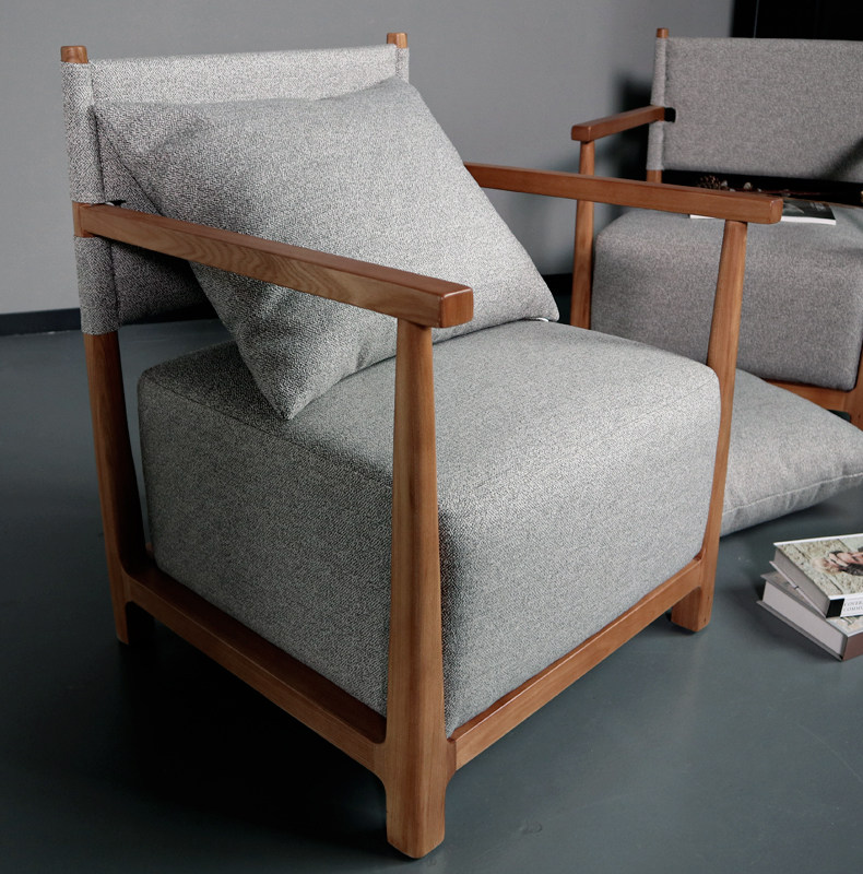 Wood working simple wind solid wood elm wood living room Single sofa Import cloth Art Nordic Wind designer Reading Leisure chair
