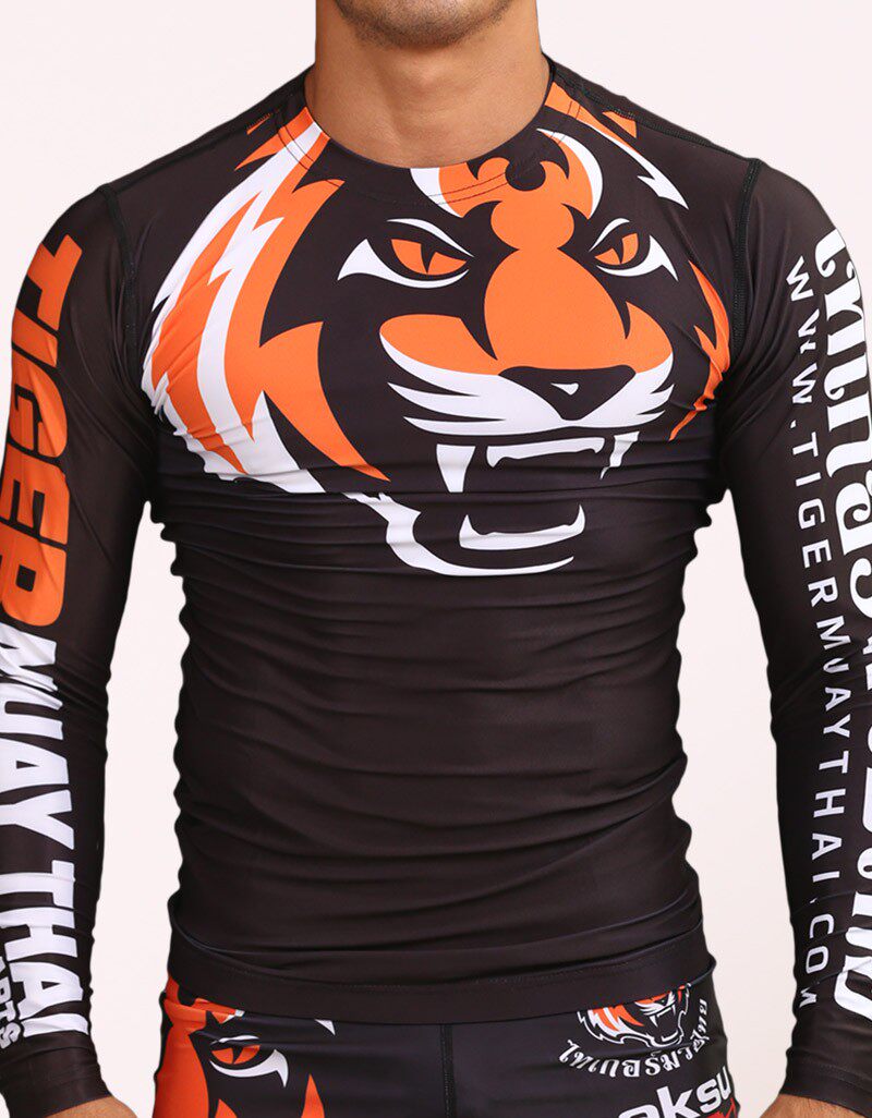 Men's Long Sleeve Jiujitsu Wear Black Mixed Martial Arts Fitness Training Tights TigerMuayThai