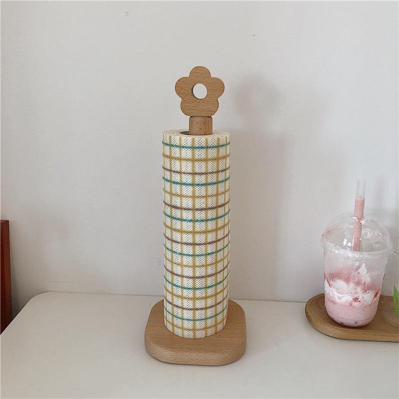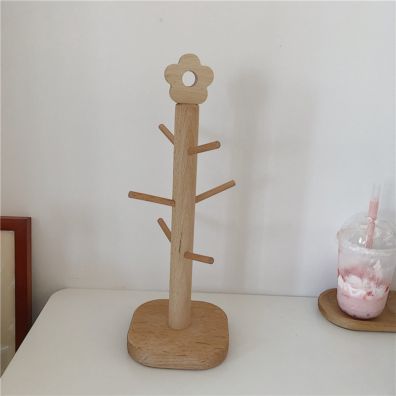 Creative roll paper rack beech wood small fresh small flower cup holder kitchen paper plastic wrap storage rack mug hanger