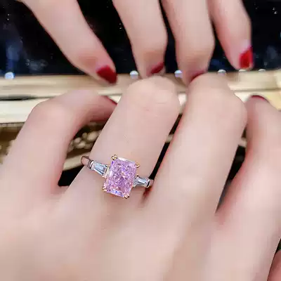 Platinum mo sang shi pink gong zhu fang ring for Women 2 Karat fashion high-grade pink diamond ring light luxury Tanabata