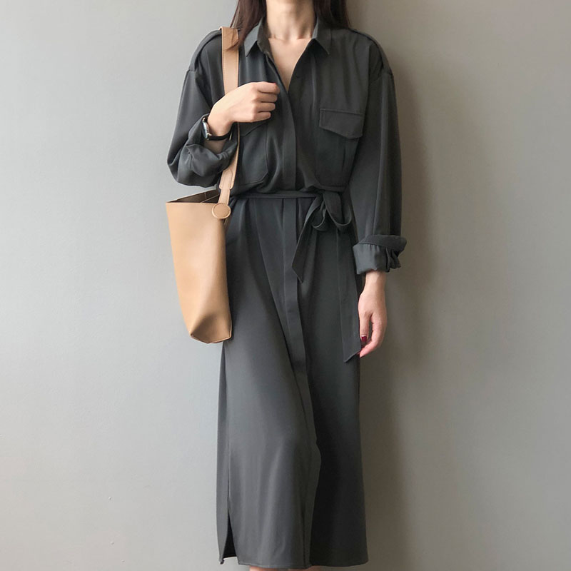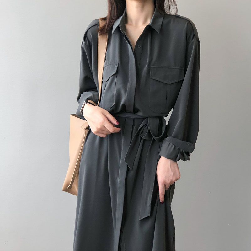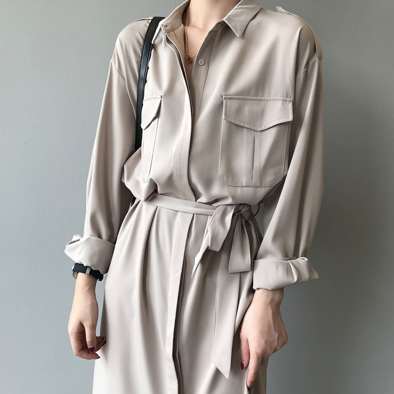 Shirt dress girl 2020 new Han edition tide relaxed waist and lean French light - cooked wind dress