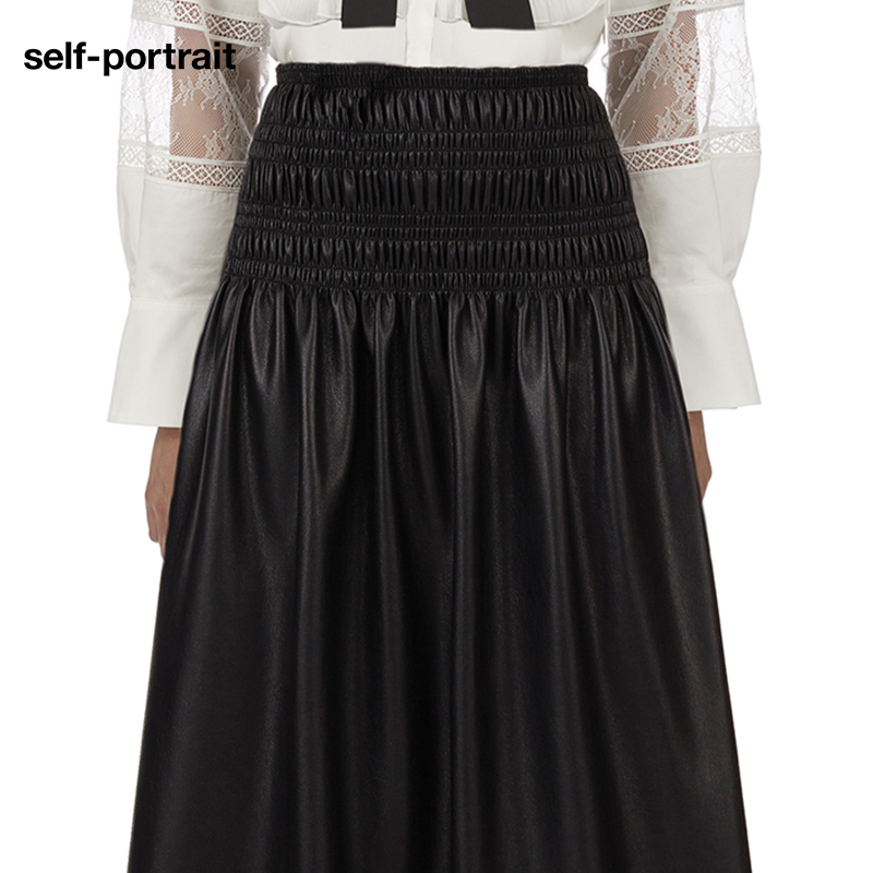 self-portrait black handsome gas eco-friendly leather closedown half skirt mid-skirt-Taobao