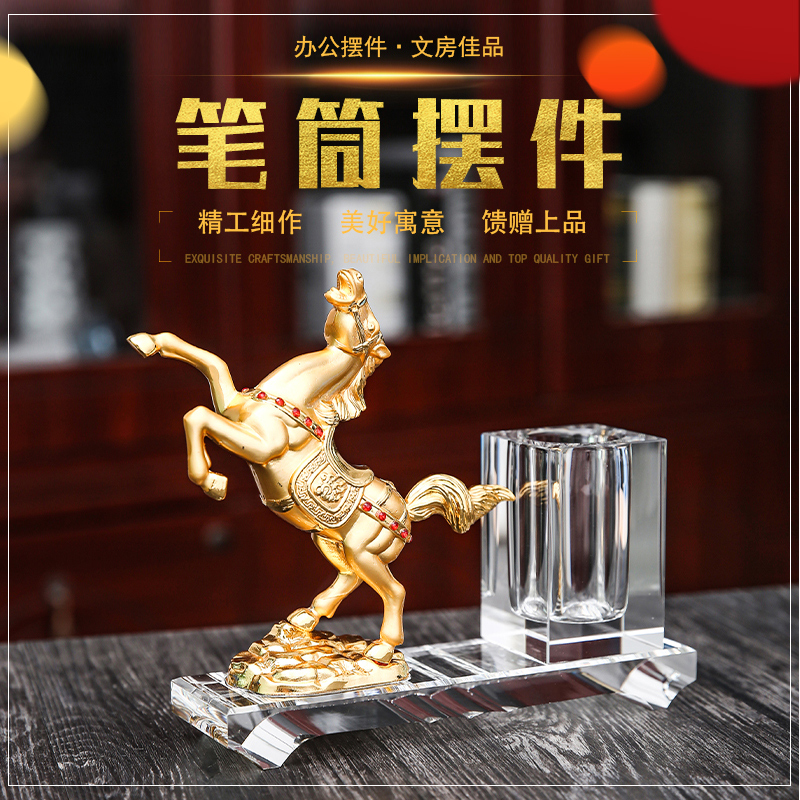 Horse to Success Crystal Pen Holder Horse to Success Golden Horn Pen Holder Big Exhibition Macro chart Crystal Pen Holder large exhibition Macro Tugold Corner Pen Holder