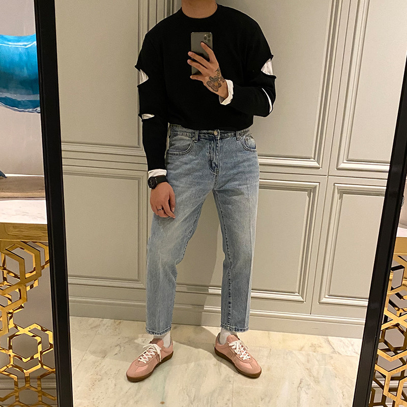 BROTHER 2020AW men's new fake two knitwear Korean ins Net Red personality sweater men's tide