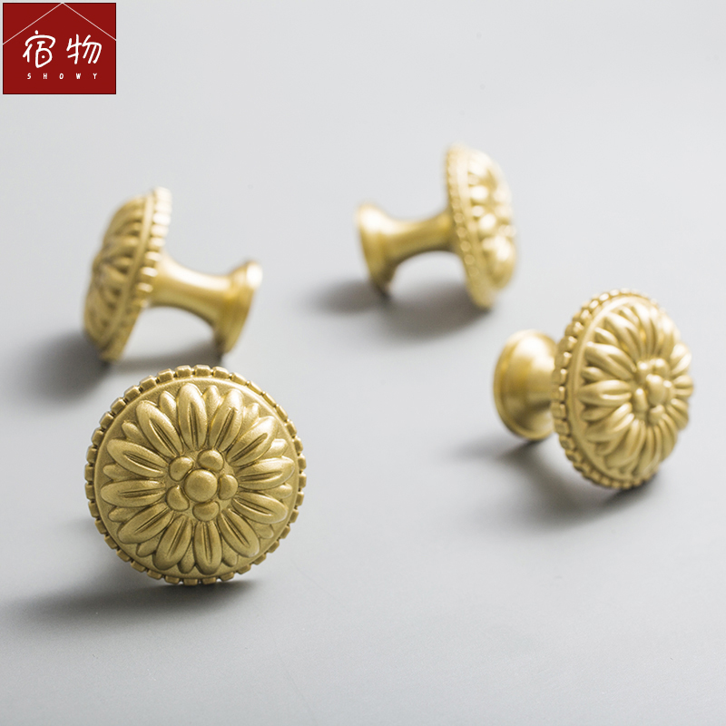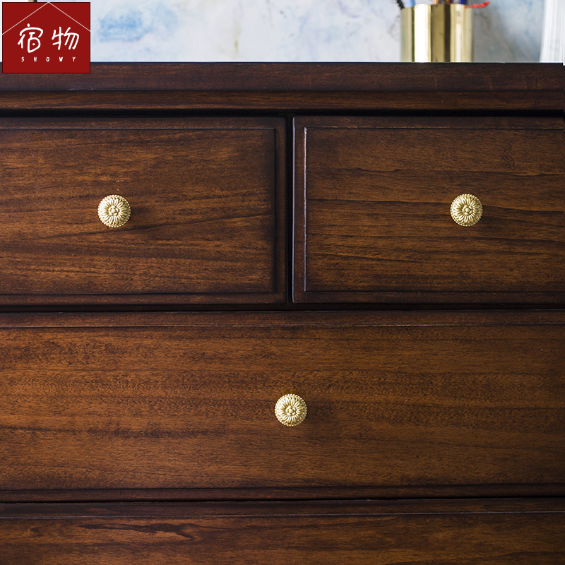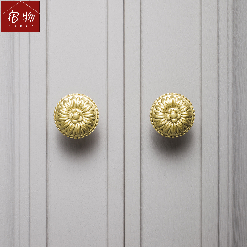 Accommodation European French retro brass handle drawer overall cabinet wardrobe door pure copper gold single hole round small handle