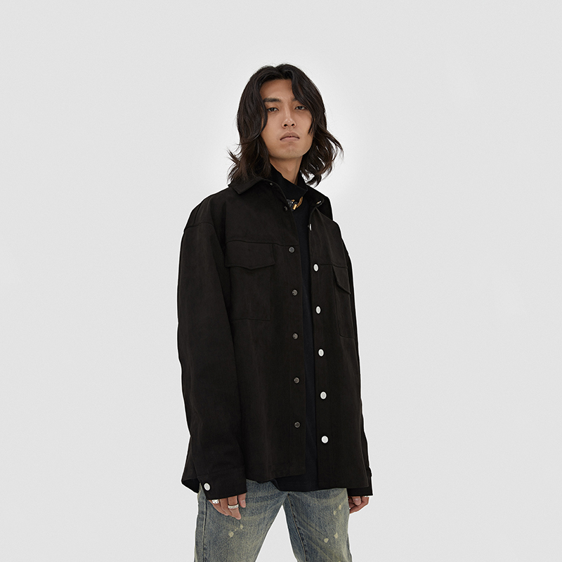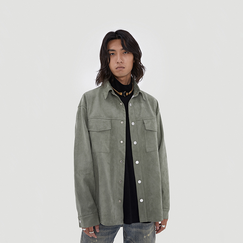 BONELESS tooling pocket suede long sleeve shirt trendy 100 lap single row buttoned shirt jacket man
