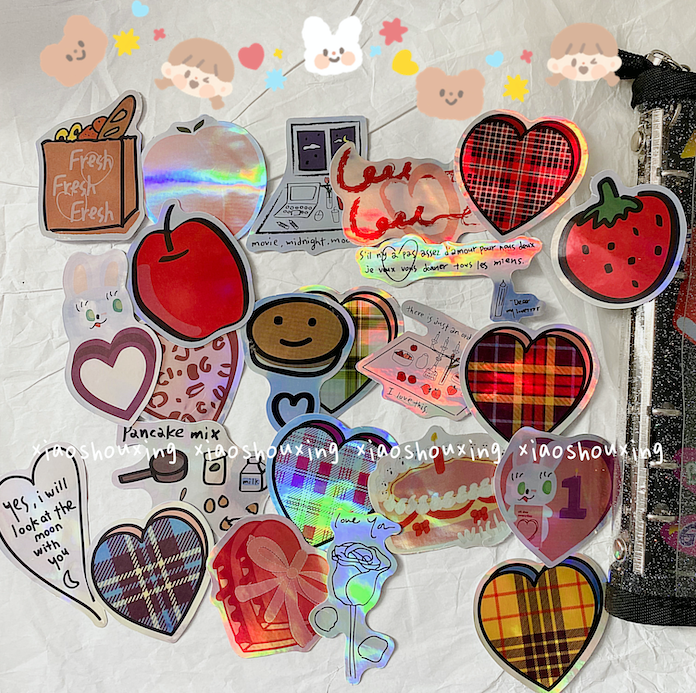 South Korea Ins Retro Loving Laser Waterproof Sticker Hand Ledger Mobile Phone Computer Notes Suitcase Decoration Small Stickler