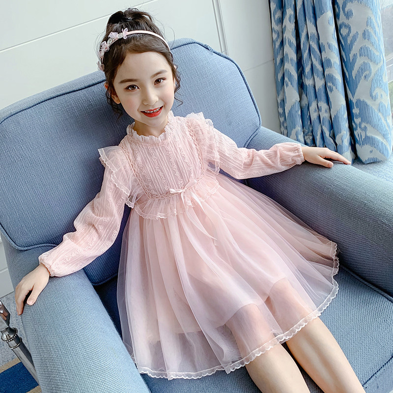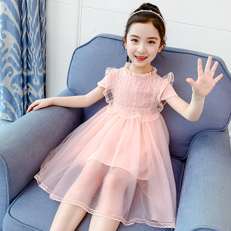 South Korean girl's dress for spring and summer 2022 new foreign pie children princess dress short sleeve Korean version summer mesh yarn dress