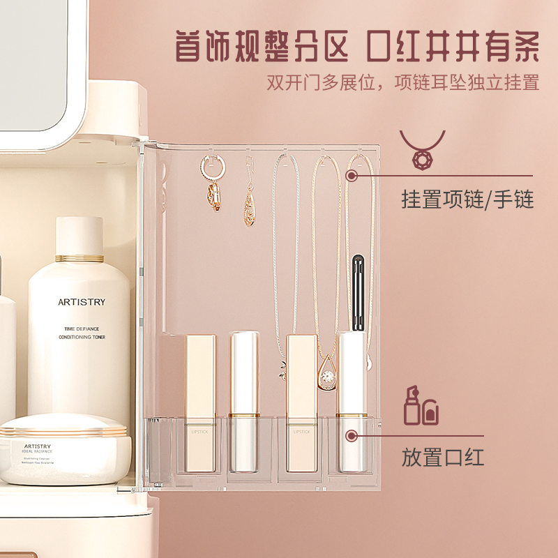 Desktop Cosmetic Storage Box LED Light Cosmetic Mirror Dust-proof Large-capacity Cosmetic Desk Lip Red Skin Care shelf