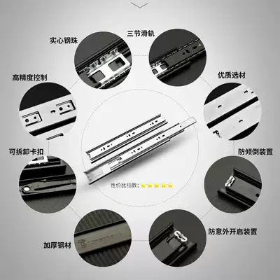 Top 45 three-section ball slide slide mute rebound drawer slide slide self-locking mute track thickening multi-Specification