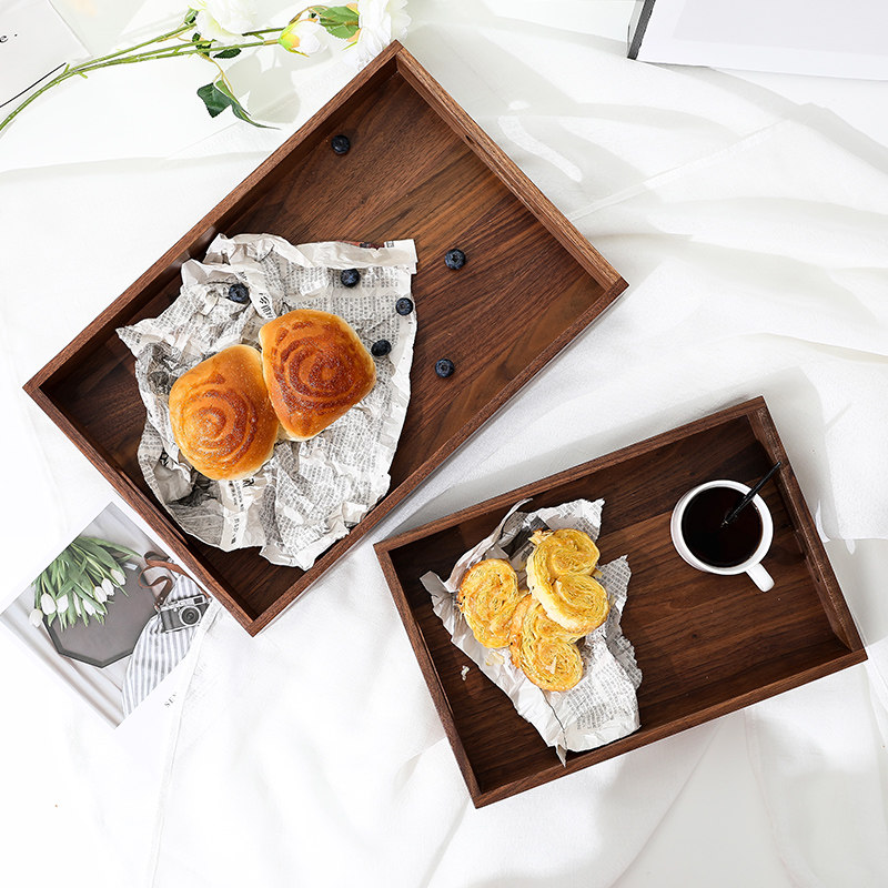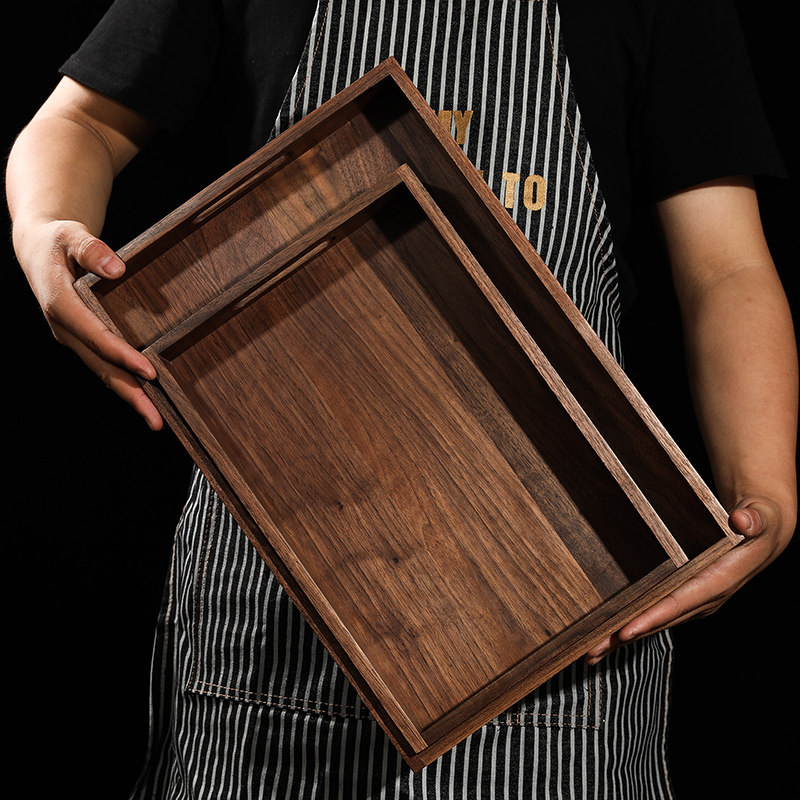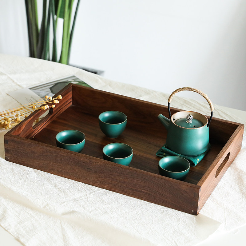 qnr black walnuts minimalist solid wood tea tray home handle living-room food wood pallets rectangular-style inwind-Taobao