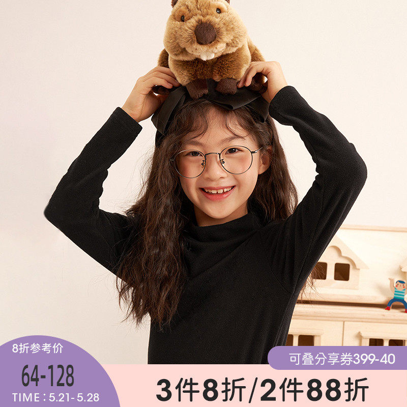 Yin Mantong Girl Dress Girl Duvet Jersey Fever Child High Collar T-shirt Parent-child Black Tech Winter Foreign Pie