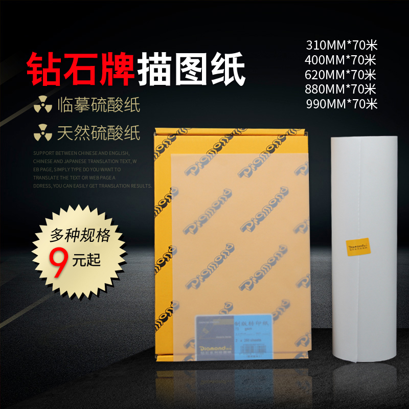 Diamond sulfuric acid paper tracing paper copy paper A4A3 can copy paper with high transparency of 73 grams thick art copy paper copy paper transparent paper tracing drawing special sulfuric acid paper translucent