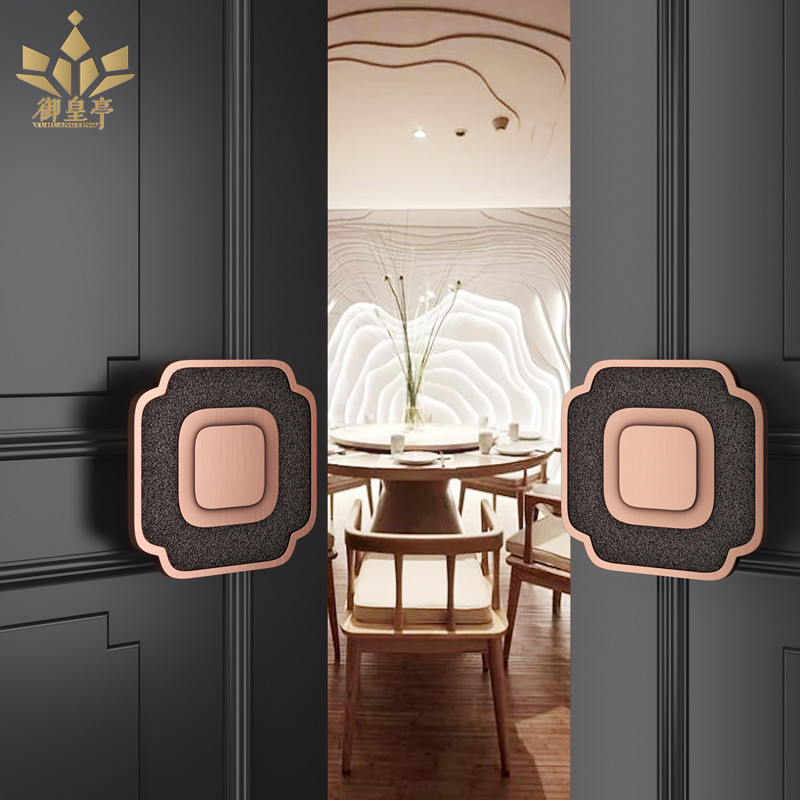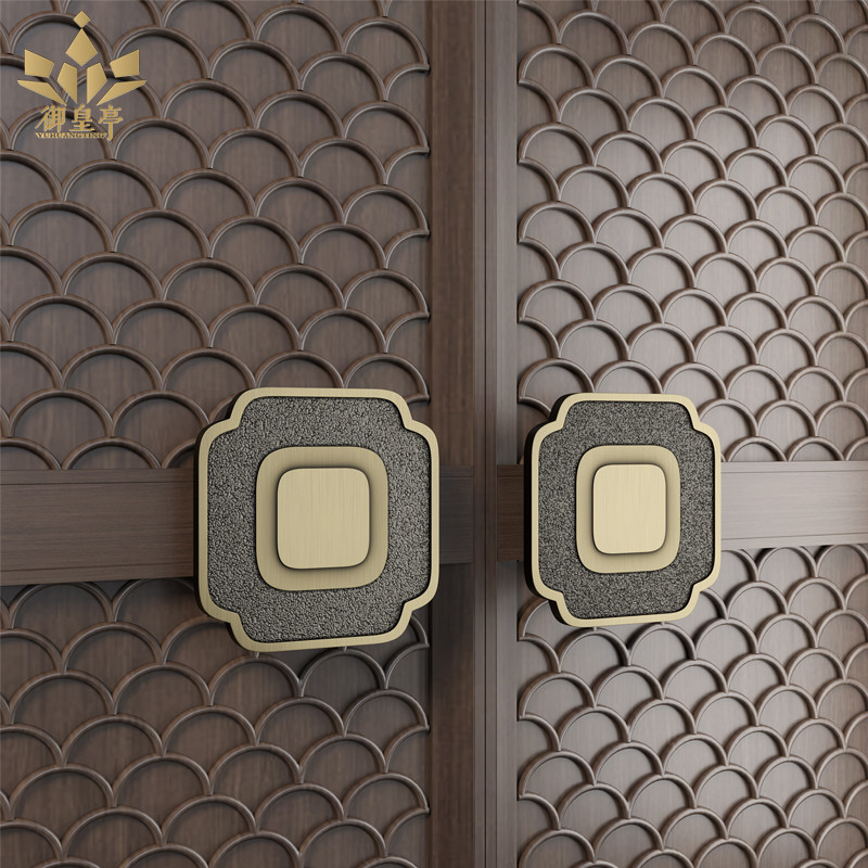 Chinese-style light luxury health club private room door handle surface-mounted double-door handrail solid aluminum plate carved door handle