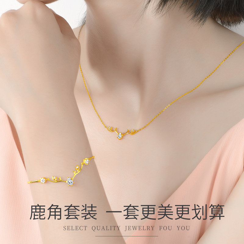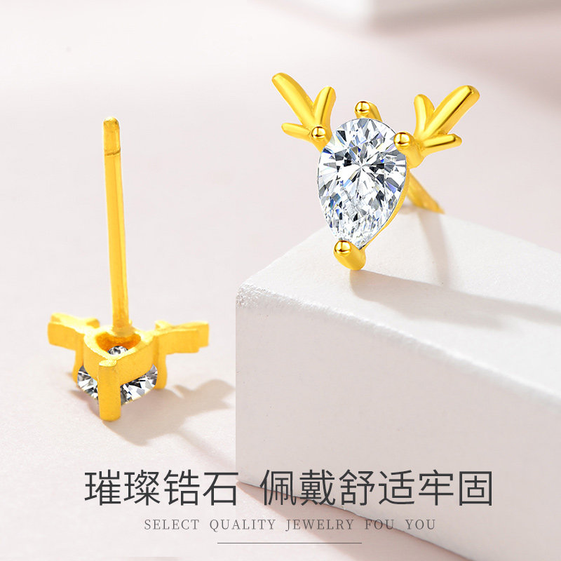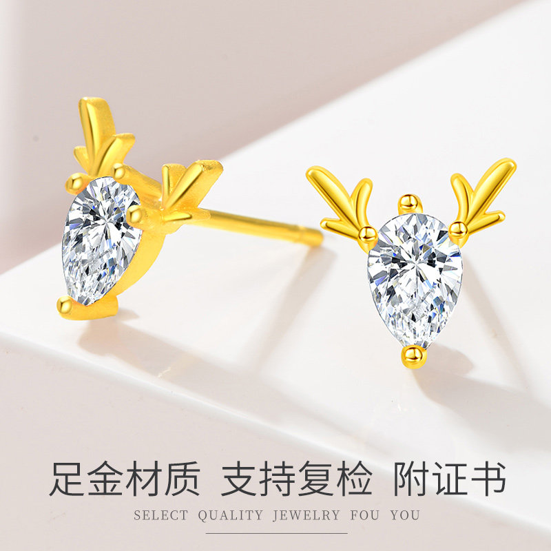 Gold earrings women's new 24K pure gold antler earrings 999 pure gold a deer has you Qixi gift earrings
