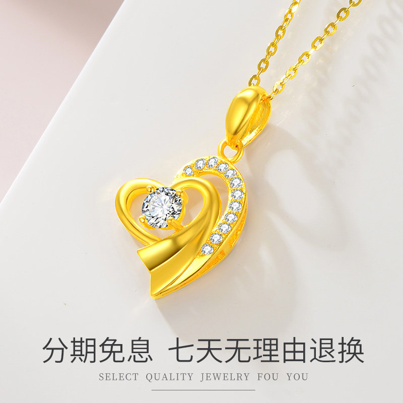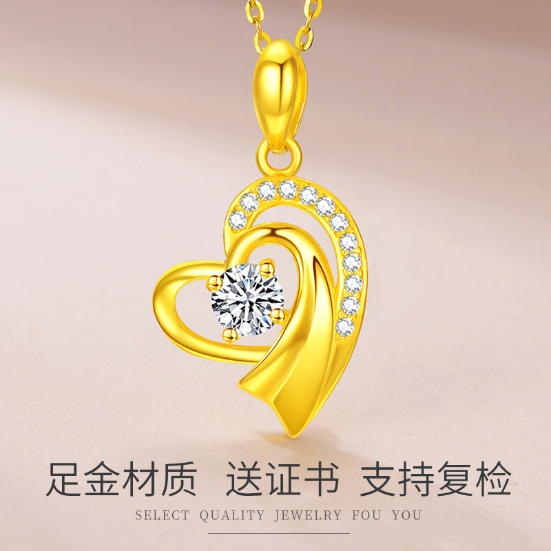 Gold necklace woman 24 K pure gold kkosher crane 999 footgold lady heart - shaped new seven - night girlfriend