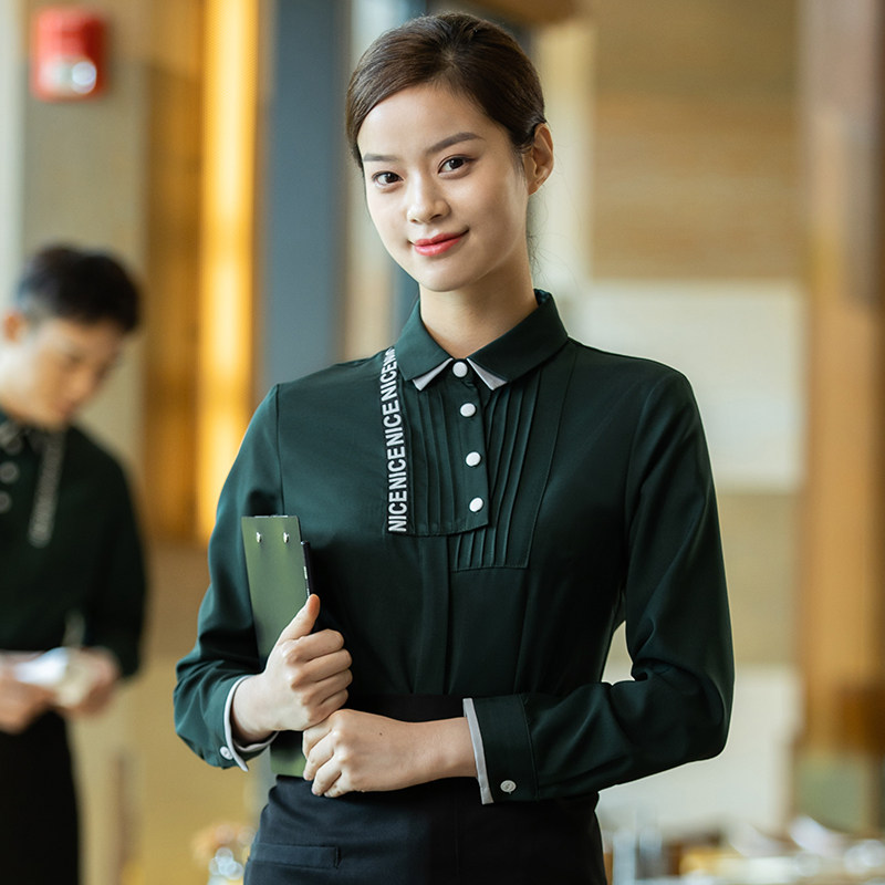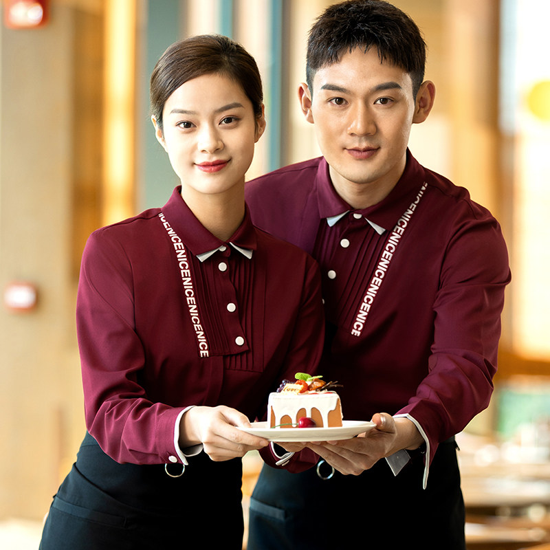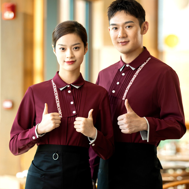 Catering Attendant Working Clothes Woman Cafe West Restaurant Fire Pot Shop Clothing Cake Milk Tea Shop Long Sleeve Autumn Winter Clothing
