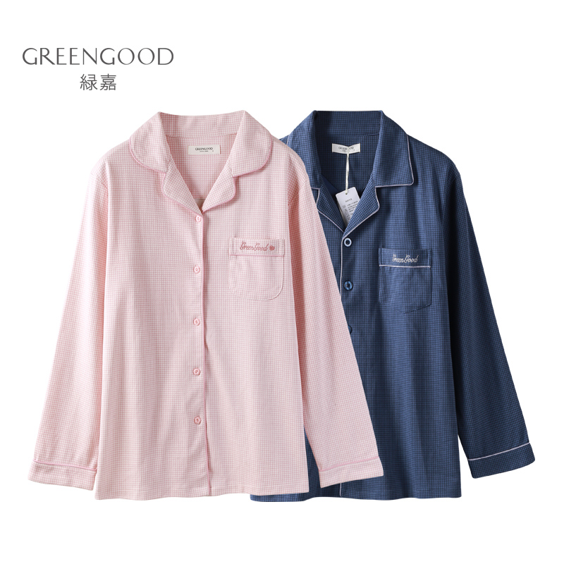 Lvjia spring and autumn new couple pajamas women's long-sleeved cardigan men's pure cotton increase loose casual home clothes suit