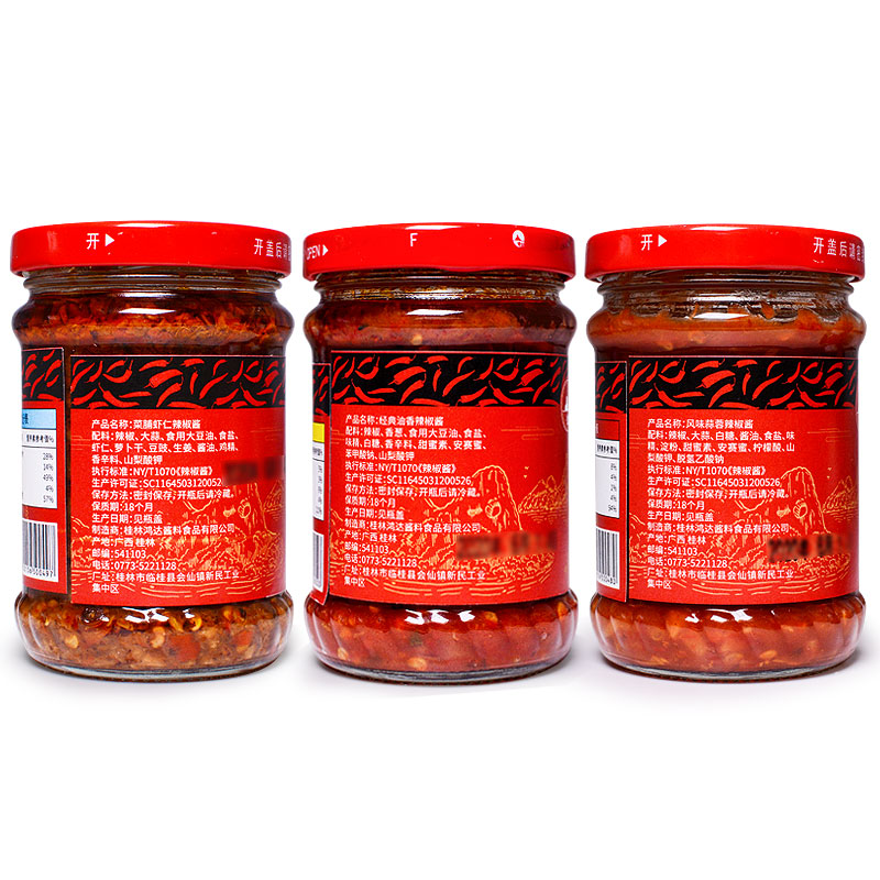 Guilin Aishan Brand Chili Sauce, Garlic Oil Fragrant Shrimp Three-flavor Bottled Homemade Noodle Sauce, Guangxi