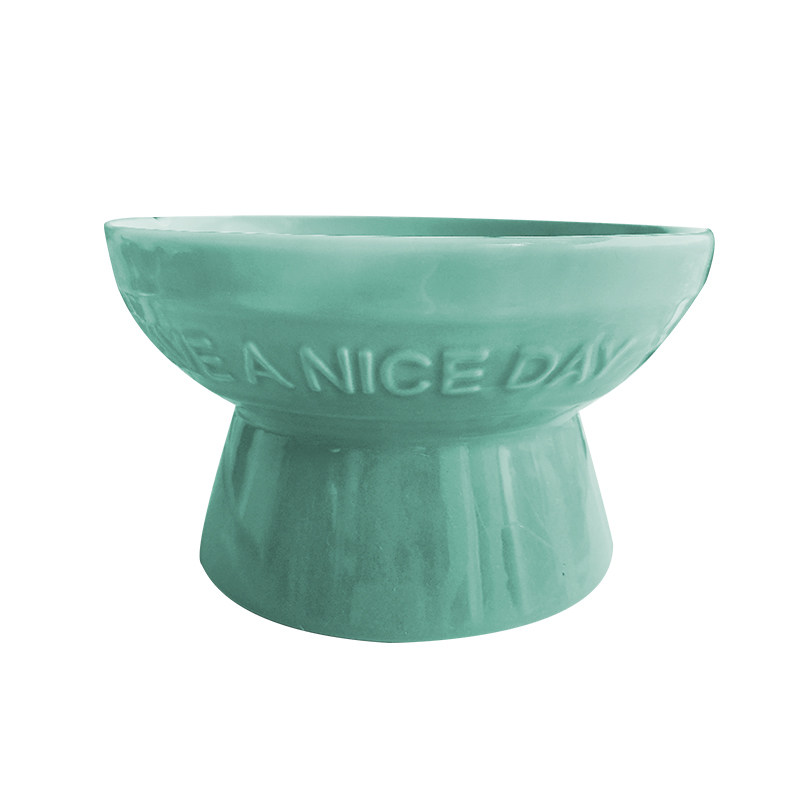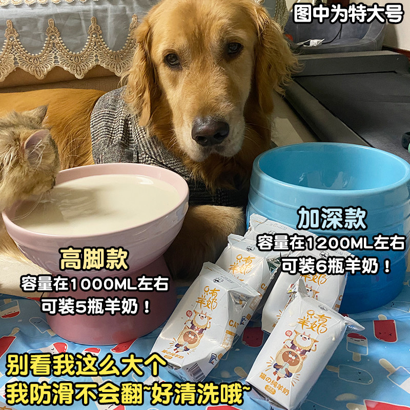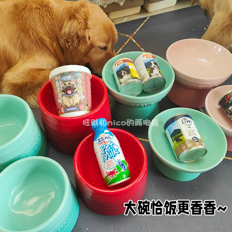 (Wangcai) big dog special ceramic dog bowl pet dog for deepening high foot bowl care cervical spine gold mullabrador