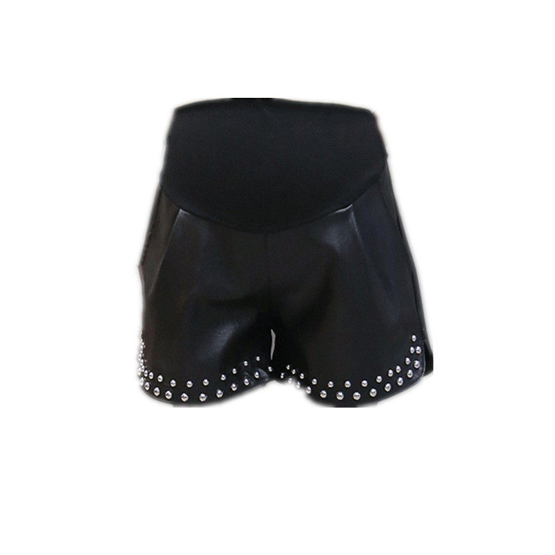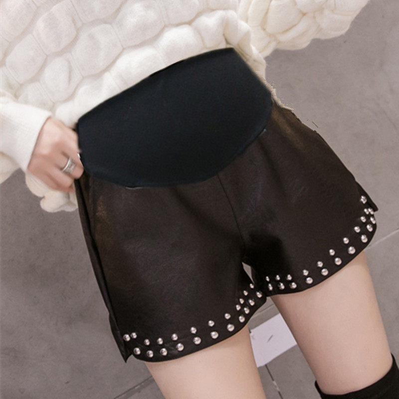 Pregnant Woman Shorts Autumn Winter Loose high waist display slim leather pants outside wearing Lean Nursery Shorts Spring Autumn Korean version wide-legged shorts