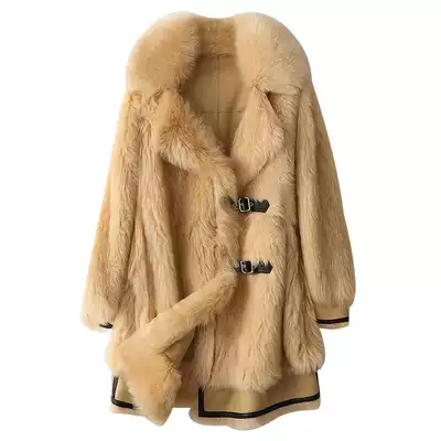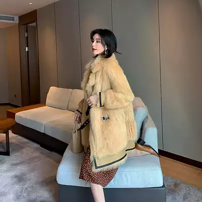 Fashionable suit collar imported Tuscan fur one-piece fur jacket women's medium and long version of leather leather button