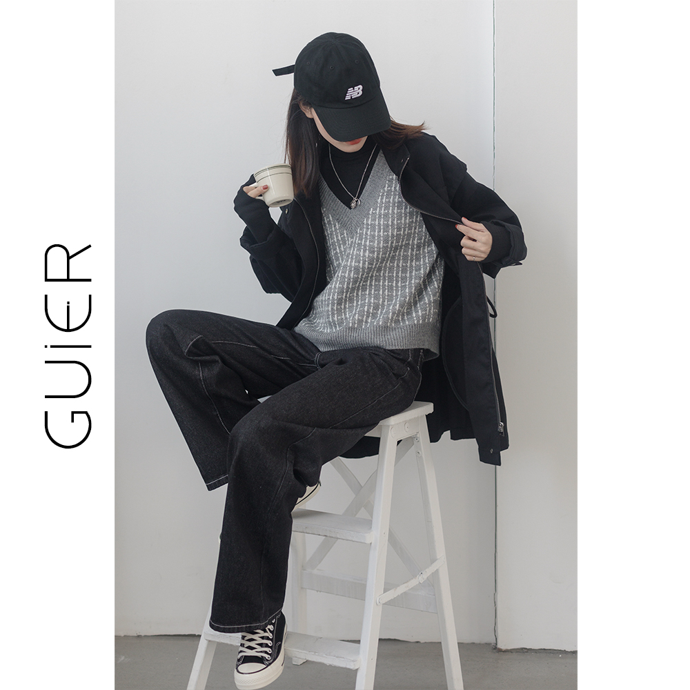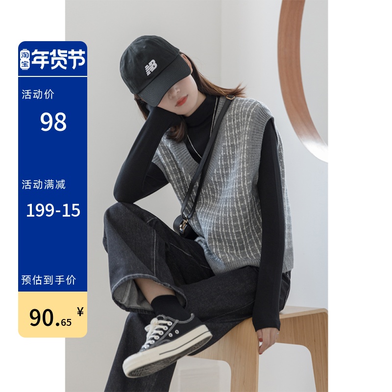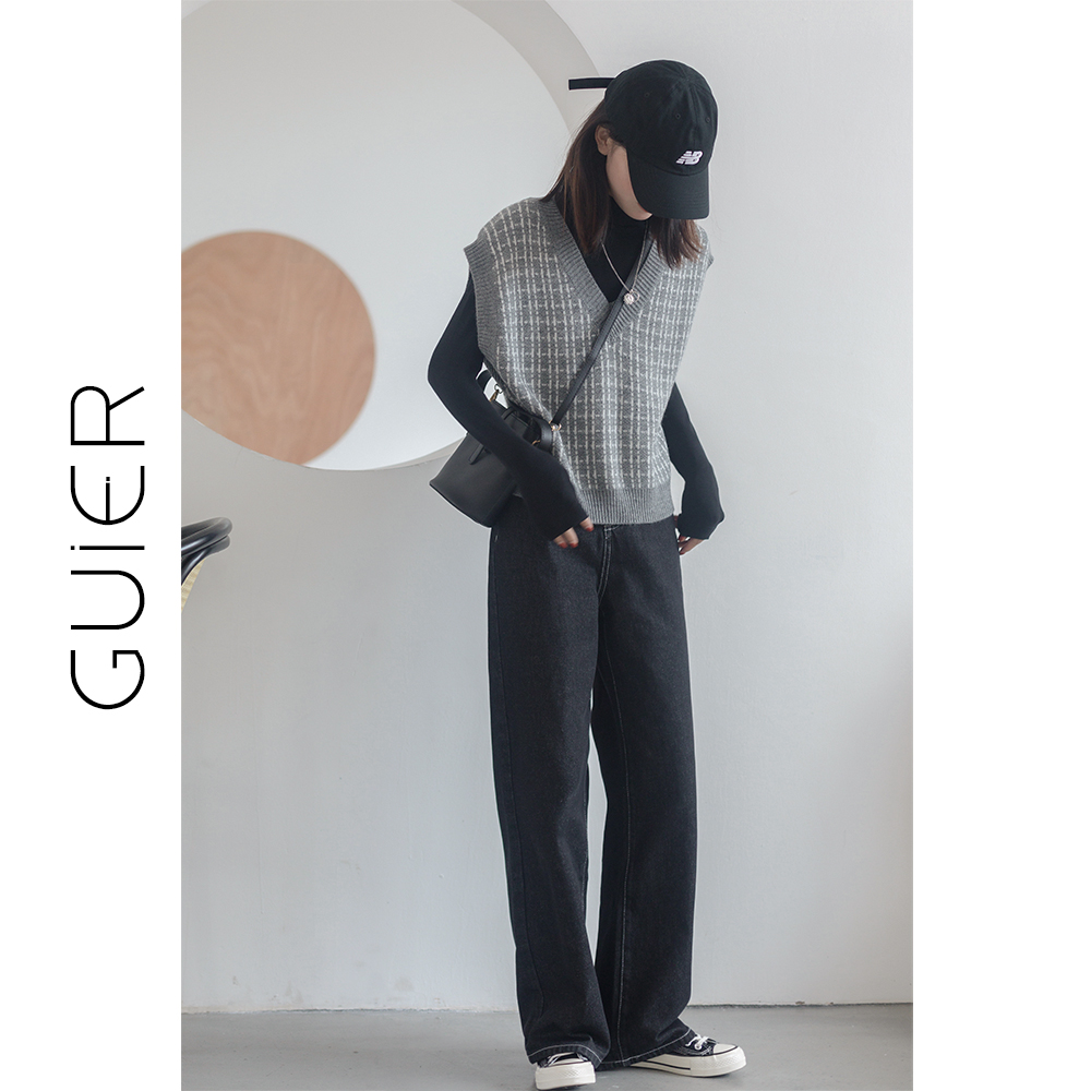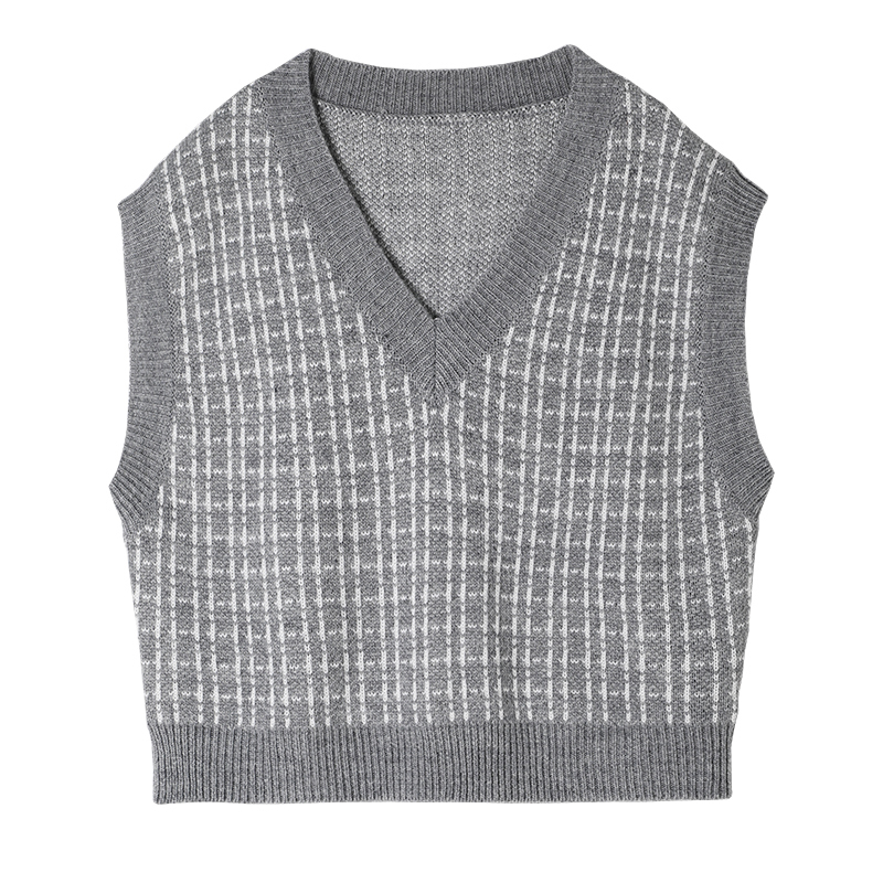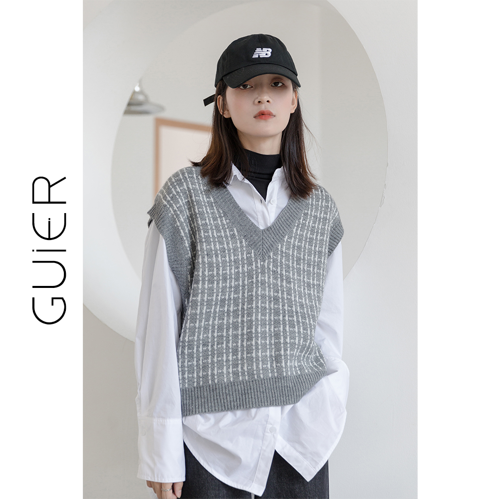 "GUIER" V-neck Plaid knitted vest women 2021 sleeveless vest loose vest female