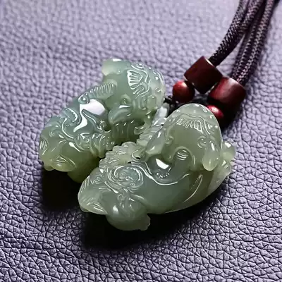 Hetian Jade Pixiu pendant 42mmx24mm Jade Lucky Pixiu pendant Necklace Jade pendant green and white jade