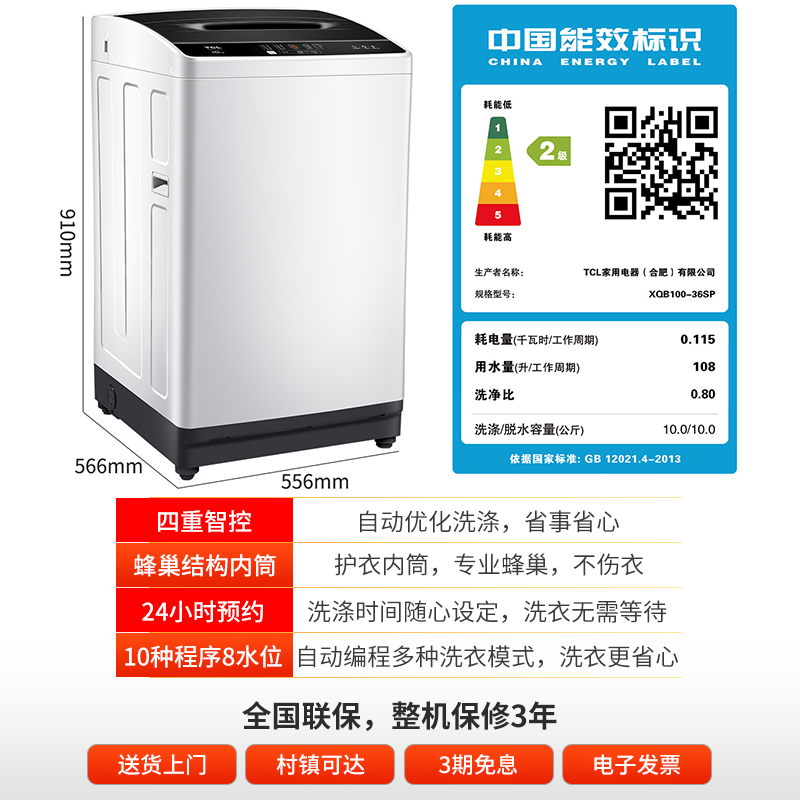 TCL 10kg automatic wave wheel washing machine household energy saving mute large capacity intelligent elution one 8 9