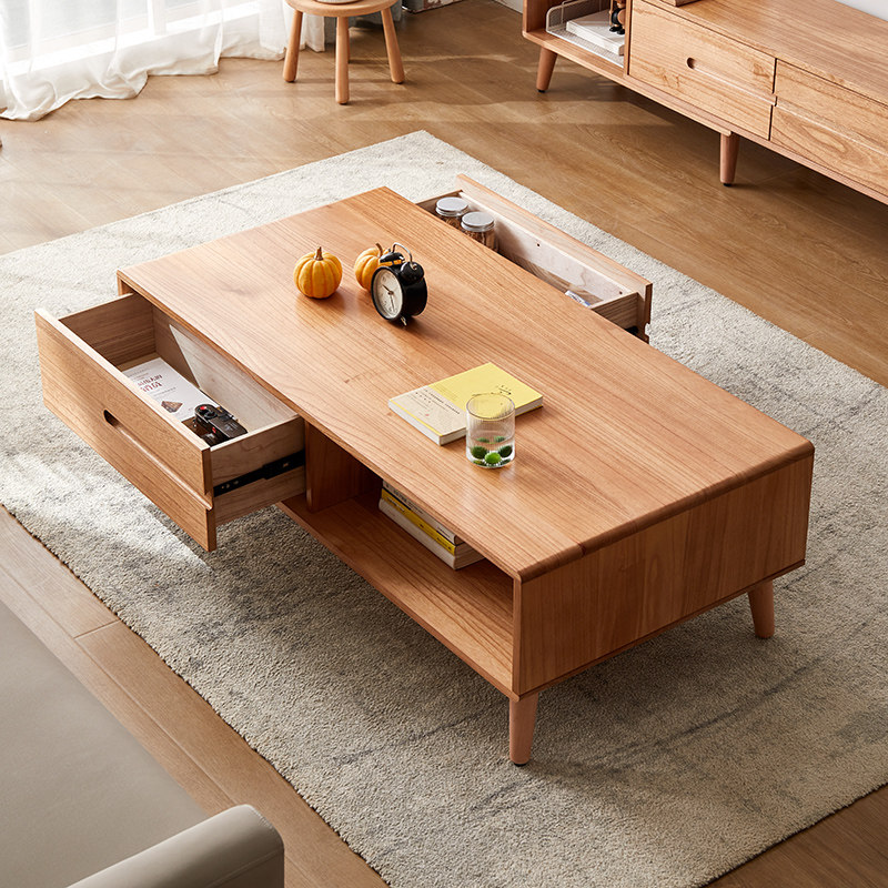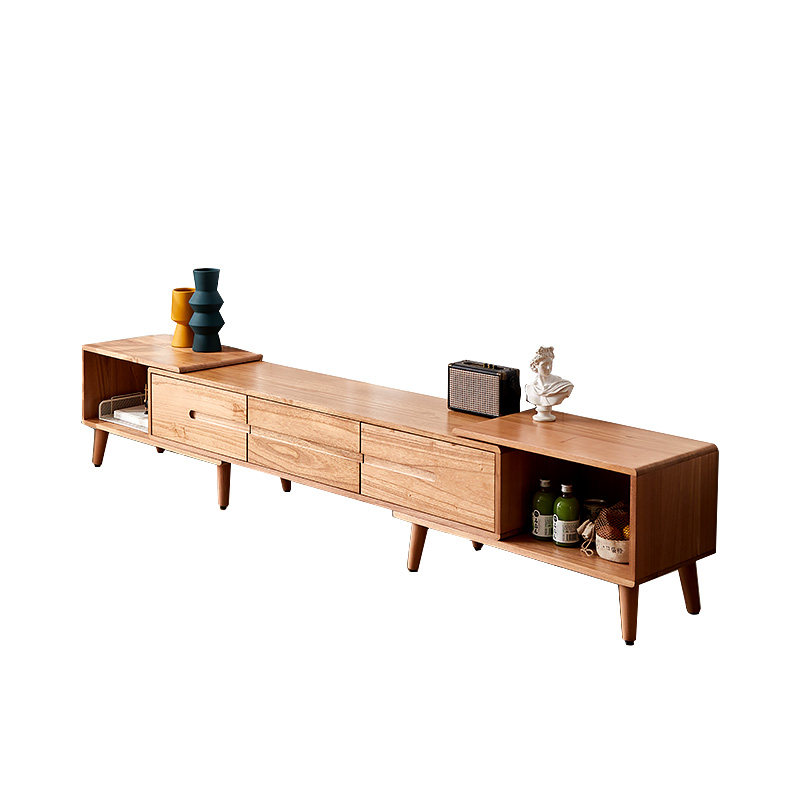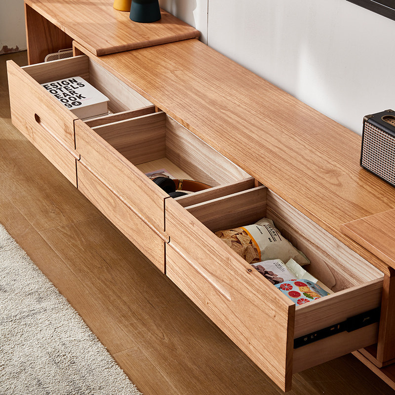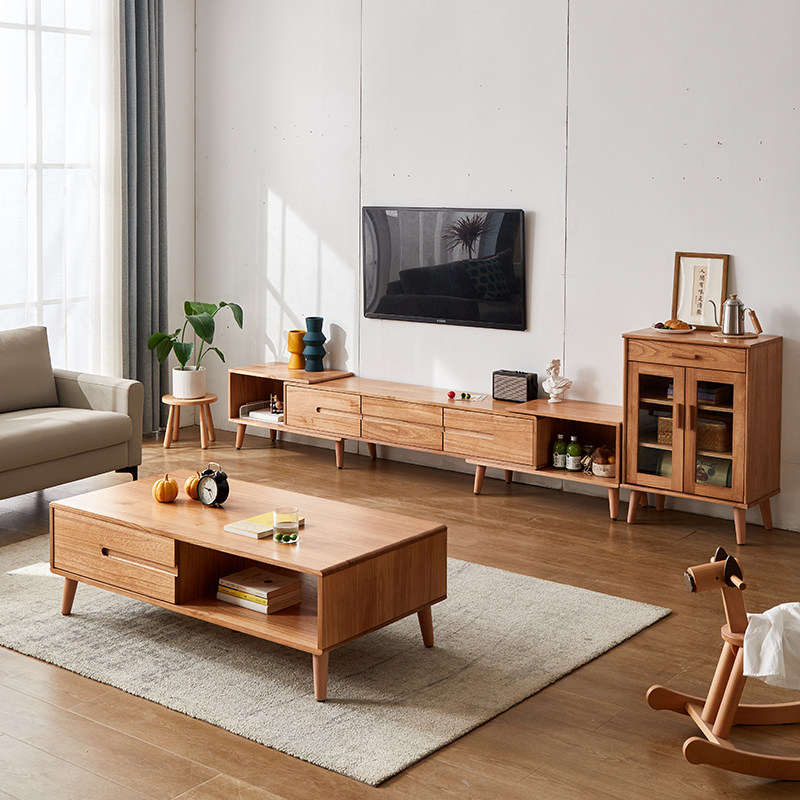 Nordic solid wood telescopic TV cabinet coffee table combination modern simple small apartment light luxury bedroom TV cabinet