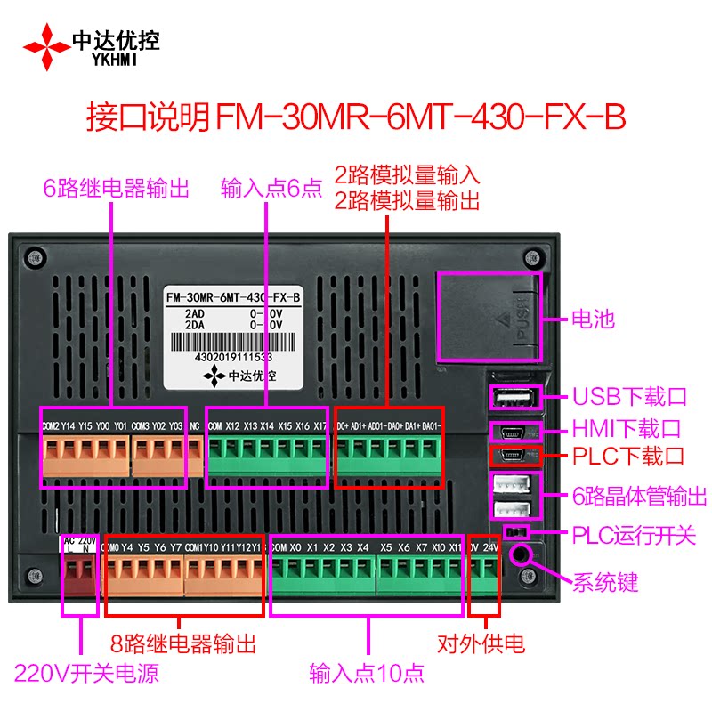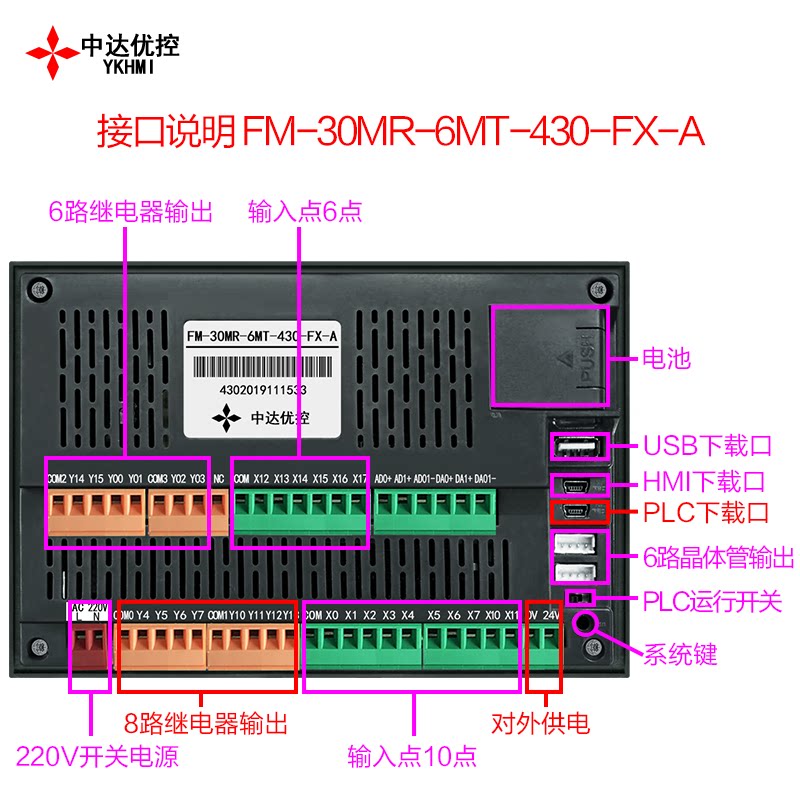 Zhongda excellent control 220V power supply PLC all-in-one machine color text FM-30MR-6MT-430 FX-A B industrial control