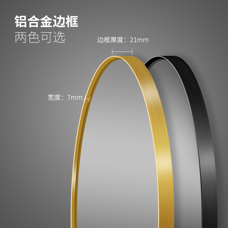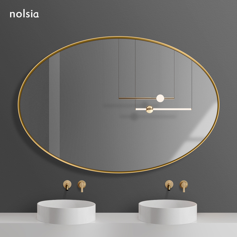 Light luxury elliptical aluminum alloy frame mirror Sink makeup mirror Makeup mirror Powder room mirror Wall-mounted bathroom mirror