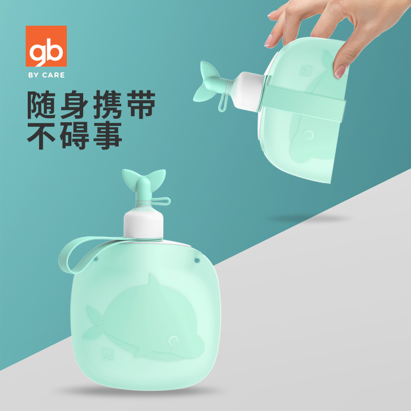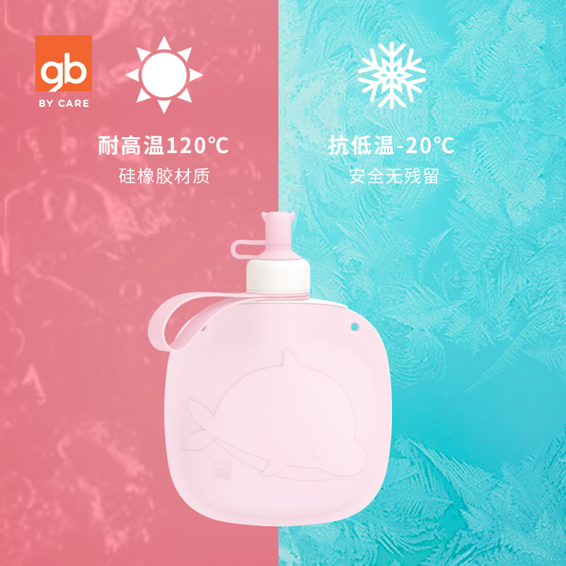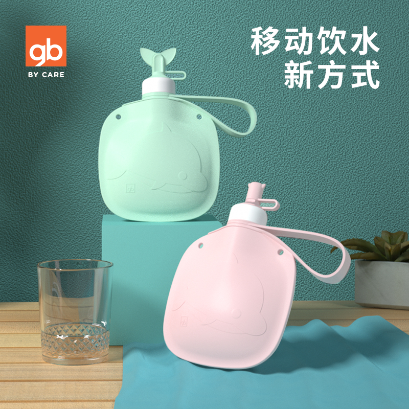 gb good kid child silicone gel water bag folding portable braces water cup baby mini kettle 400ml-Taobao