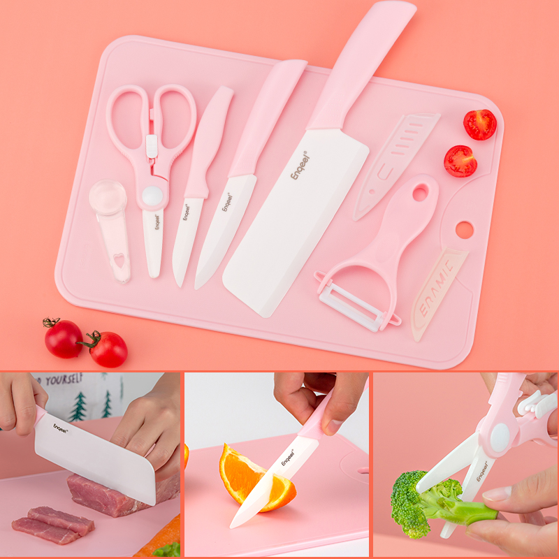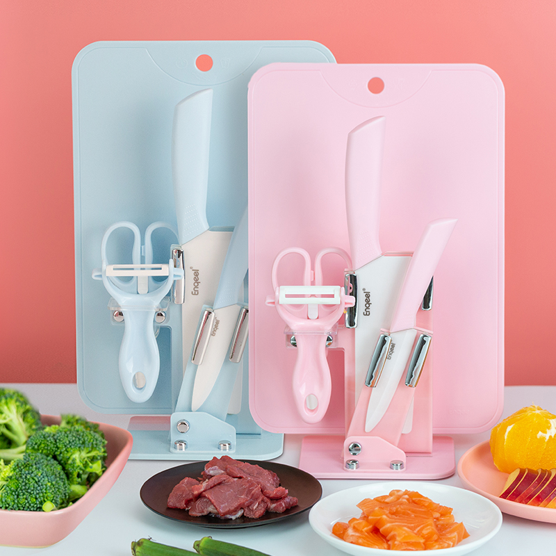 enqeel Japanese non-staple food knife set baby knife ceramic food scissors cutting board portable baby non-staple food tool