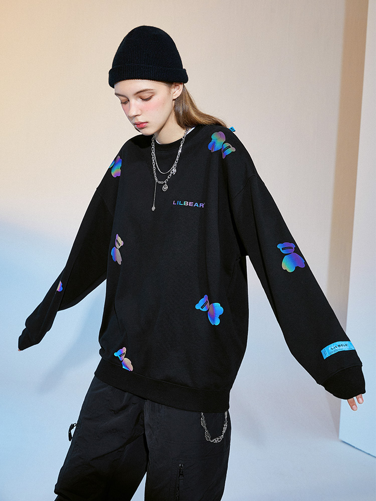 Lilbetter Bear thick cotton T male tide ins Port wind handsome crew neck couple autumn colorful reflective comic top