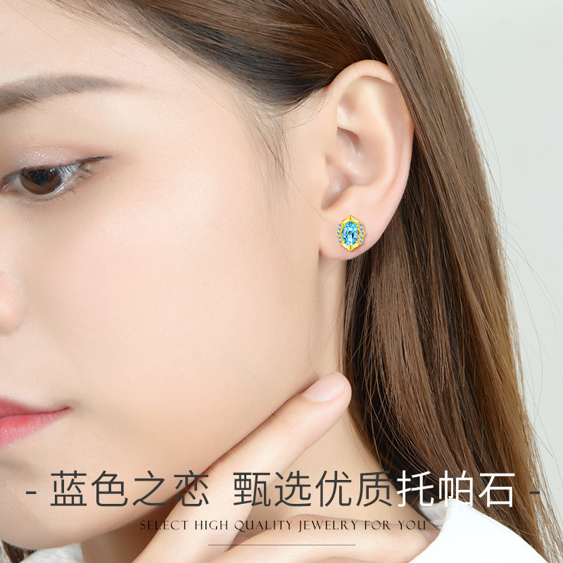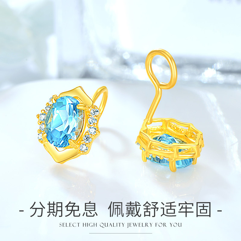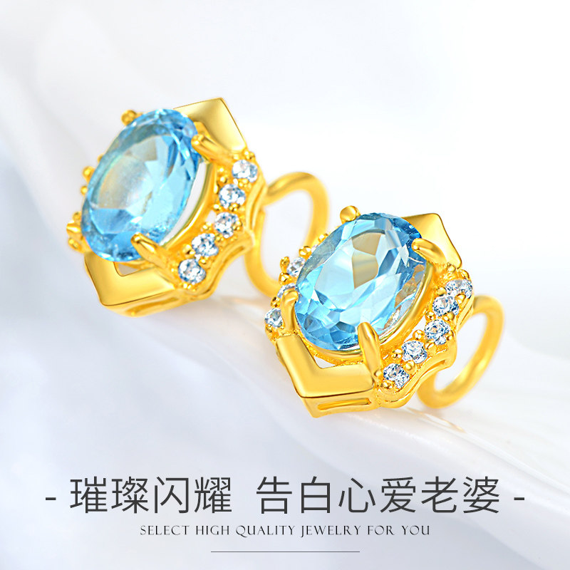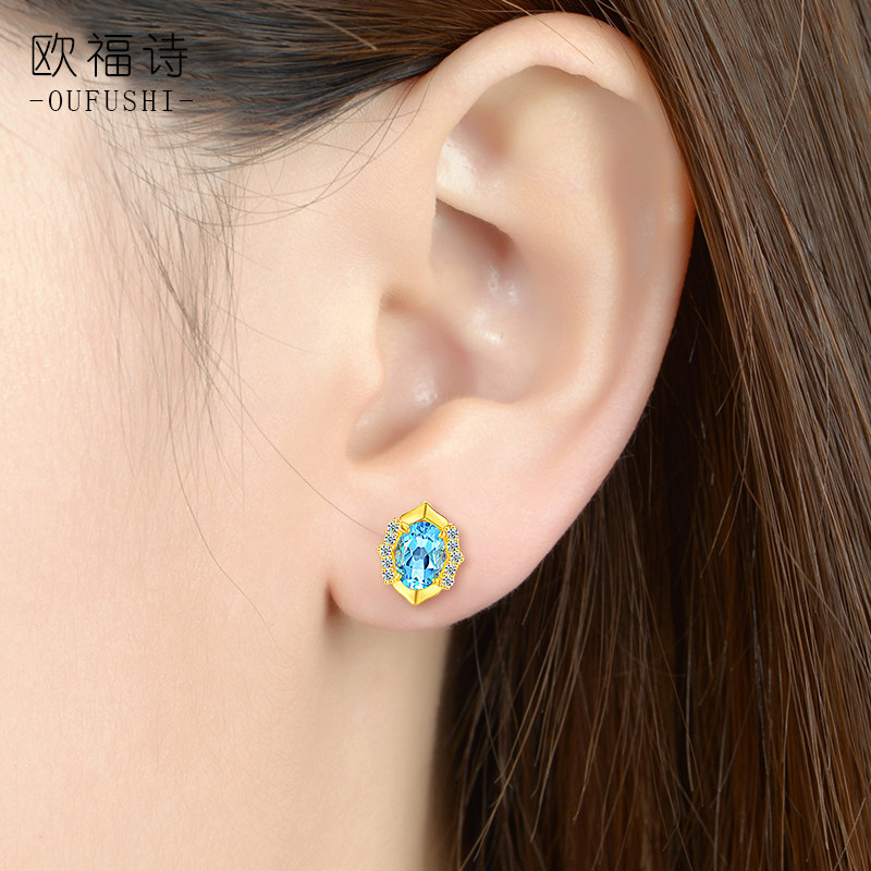OFFE 999 Golden ear Topasto minimal blue foot gold earrings new 24K pure gold earrings