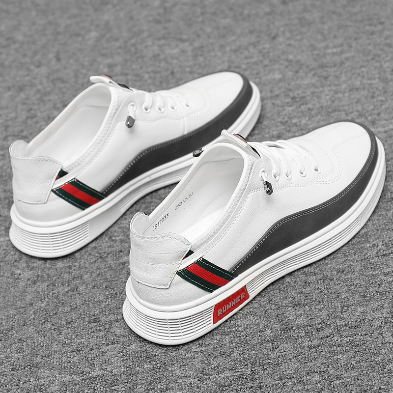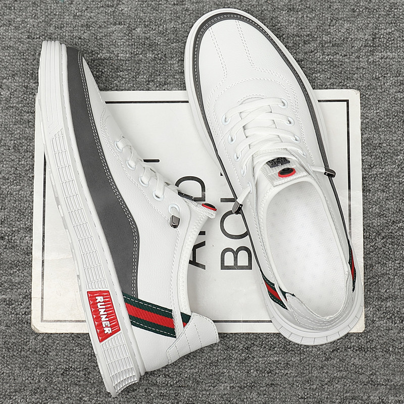 2021 new fall casual leather shoes men's shoes men's shoes Men's shoes Han version 100 hitch a youth net red flat light white shoes