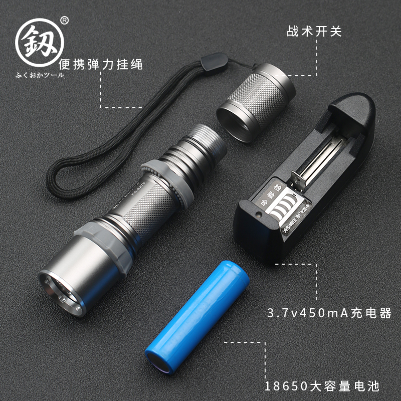 Japan Fukuoka strong light flashlight army waterproof long-range rechargeable LED light home outdoor portable travel tool - Taobao