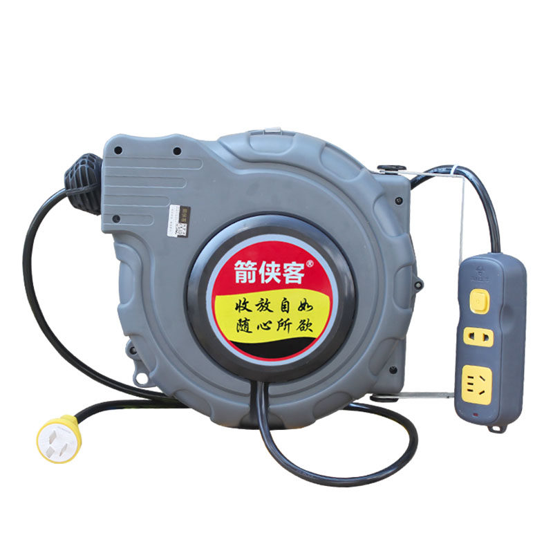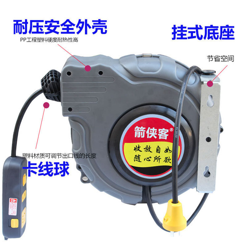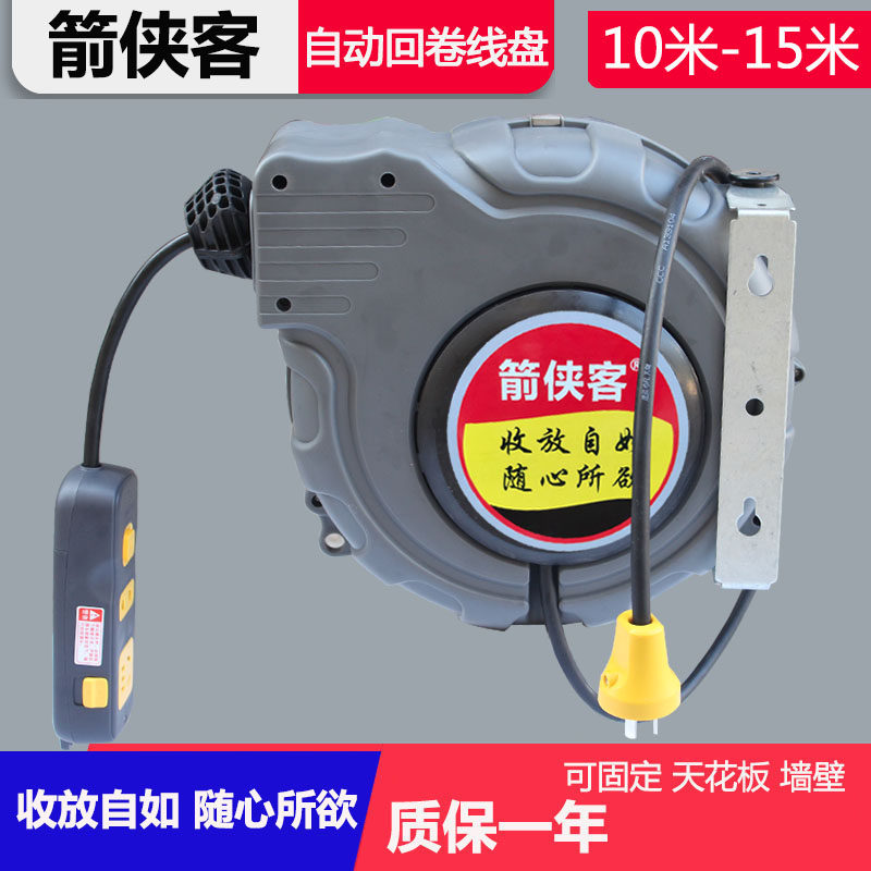 Automatic telescopic wire reel rewinder spool electronic drum 15m take-up power coil wire drum plug socket plug wiring board